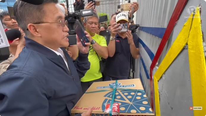 In the midst of this high-profile arrest, Duterte’s former top aide, Senator Bong Go, who is currently seeking reelection, was spotted outside Villamor Airbase attempting to deliver a box of S&R pizza. The request allegedly came from Duterte’s daughter, Kitty. Photos and videos of this unusual “pizza delivery” quickly went viral, sparking laughter and debate online.